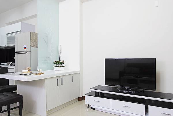餐桌部分設計師把動線設置在冰箱旁邊,在視覺上可以把廚房和客廳做區隔。